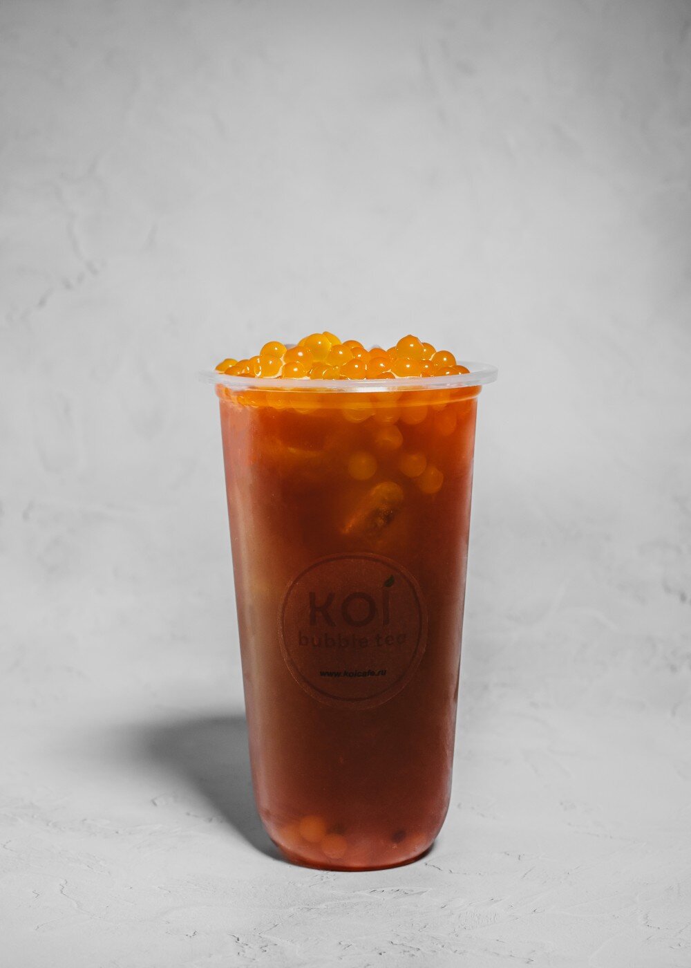 Красочный красный чай гармонично сочетается с нежным ароматом кумквата. Кумкват- маленькие мандарины, которые придают напитку легкую сладость и свежесть цитрусов. (Включает в себя боба шарики)
